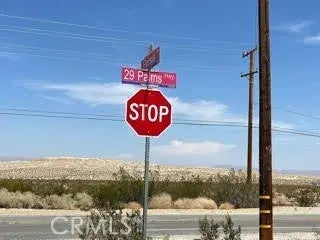 Flat Vacant Land. Let your imagination go wild with this parcel.. Built your dream home, maybe an AirBnB, or a rental, with over 10,00 sq.ft of land. View all around you, views of the mountains, views of the monument. Very close to Joshua Tree National Forest. Go hiking, camping, and enjoy The beauty of the desert. Build your home and star gaze every night, enjoy the fresh air. Shopping is close by, go down the hill and your in Palm Springs. In the winter go up to Big Bear and ski.... Water and Electricity available.
