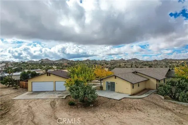 BIG PRICE REDUCTION TO SELL QUICKLY. Two full homes on over two acres with really picturesque views. Night skies are beautiful here. Desert vistas for miles, towering and rugged rock formations much like you would find in the Joshua Tree National Park. Located in a secluded suburb right off of Skyline Ranch Road in a rural setting sits a very spacious 2,535 square foot 2 bedroom, 2.5 bath home with a great layout, newer roof and a bonus room for your home office or den. The second home boasts an additional 1,200 square feet of living space, one bedroom, one bathroom, a well appointed kitchenette, a living room and garage space that has been converted to be additional living space. This additional dwelling would make for a great rental property, art studio, large work shop and/or more. The two homes with a combined 3,735 square feet of living space are awaiting you to make them yours and update them to your tastes be a spectacular location to live. The main home features a gallery kitchen, formal dining area, family room in addition to the large living room, a wood burning fireplace, separate laundry room and a two car garage. Both homes feature plenty of built in cabinetry providing for good storage. There is a very nice secluded courtyard built in between the two homes with nice shade trees, winding paths and nice landscaping. In addition you will find a few other great exterior patios, a relaxing covered front porch and a separate private fenced yard for the second home. This location is close to all the high desert has to offer including Joshua Tree National Park and dow