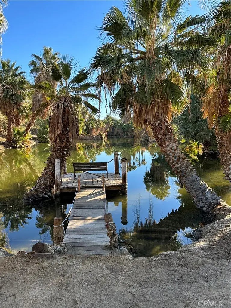 "OWN YOUR OWN LAKE" Situated on 10 acres of land with it's own LAKE, Separate Well, 3 Bedroom, 2, 3/4 Baths, Mature Palms, Fenced, Security Gates, Pump House. 960 sq ft of covered Patio, overlooking YOUR PRIVATE LAKE. This is a Dream come True. 2 Separate Metal Carports Plus thiere is a separate stucture, that was a Restrurant at one time that comes with NO Warrantees of Disclosures, Presently it is inhabitiable. (This has it's own enterance from Utah Trail as well. Remember your in the Desert and to have your own Lake is trully amazing.]Located less than 4 mile from JOSHUA TREE NATIONAL PARK directly to the South.