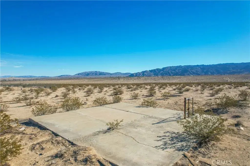 A perfect concrete slab. 29'x32'. 928 square feet. A clean slate to do whatever you want or need to do. Next to electrical poles and located in the water district. This 5 acres in Desert Heights is next to 556 acres of unobstructed land. You can't find a better 5 acres.