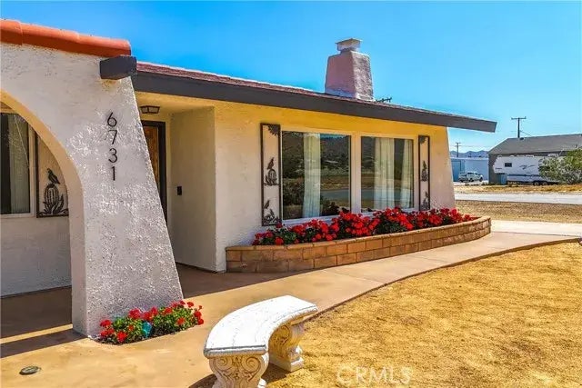 Big Price Reduction! Now Offered at $365,000! Attention first-time homebuyers! If youre seeking a peaceful retreat in a quiet neighborhood, look no further. This charming home is nestled on a serene cul-de-sac in Yucca Valley, where tranquility reigns supreme. Dont let the nearby private airport deter you; it generates minimal noise, ensuring a calm and secluded atmosphere. This delightful residence features three bedrooms, two bathrooms, and a spacious two-car garage, all within just under 1,700 sq ft of living space. The exterior has been freshly painted, and a new alarm system has been installed, enhancing both its curb appeal and security. The beautifully landscaped front yard, adorned with mature trees, invites you into a cozy interior that boasts a stunning rock, wood-burning fireplacean impressive focal point as you enter. The spacious kitchen, along with the adjoining dining area, provides ample room for culinary creations and family gatherings. The master bedroom features a private bathroom and an additional room that leads to the laundry area, offering the perfect opportunity to create a small home officeideal for remote work. One of the standout features of this property is its prime location across from Yucca Valley's private airport, making it a great fit for aviation enthusiasts or anyone who appreciates unique surroundings. Additionally, the property includes an adjacent lot, providing expanded outdoor space or potential for future development. This home is a rare opportunity to own a well-maintained piece of paradise, conveniently located near local amenitie