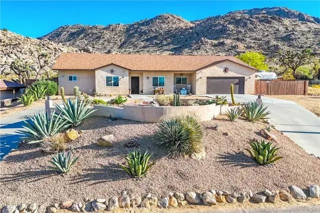 JUST REDUCED! This exquisite oasis perfectly situated with 684 acres of protected land, hiking trails, boulders, mountain views, and the iconic Joshua Trees right out the back gate, whether you're an outdoor enthusiast or simply seeking tranquility, this property offers everything you need and more. This custom built home features a spacious primary bedroom and a guest suite plus 2 spare bedrooms with a large shared bathroom with modern fixtures and desert-inspired design. Come explore the great outdoors this backyard is a must see with its western inspired features and a hot tub for those cold winter nights and refreshing 4' deep cowboy tank with a deck for cooling off on hot summer days, plus a fire pit for stargazing and marshmallow roasting, and that's not all, lets have a family barbecue, featuring a custom built barbecue shack for cooking up some food for friends & family. The landscaping has an array of cacti, plants, and mature trees, creating a private and serene environment. This property also has a full RV hookup with a 30 amp outlet. Just 2 minutes to Joshua Tree Village with eclectic shops & delicious restaurants, and only 5 minutes to the Joshua Tree National Park entrance. Don't miss the opportunity to own a piece of paradise in one of California's most iconic destinations. Schedule a viewing today and make this incredible desert haven your own!