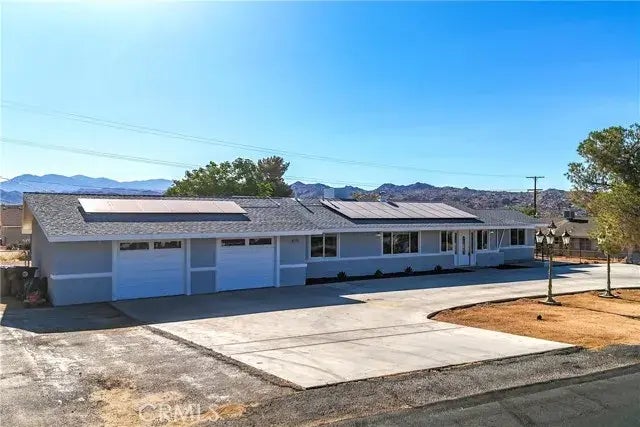 PRICE REDUCTION! Welcome HOME to a unique gem in Yucca Valley! Imagine stepping into an expansive property that offers not just a house, but a lifestyle. This remarkable 5-bedroom, 2-bathroom home, complete with an additional room perfect for your home office, is now the lowest-priced 5-bedroom home on the market! As you enter, youll be greeted by a grand living room that invites you to relax and unwind. The master suite is a true retreat, featuring walk-in his and hers closets, elegant French doors that lead to the rear patio, and a luxurious ensuite bathroom equipped with a jetted tub and a walk-in shower. With 4 spacious guest rooms, theres plenty of room for family and friends. Convenience is key, especially with a dedicated space ideal for a small office as you enter from the garage. The well-appointed kitchen is a chef's dream, boasting stainless steel appliances, a walk-in pantry, and an adjacent dining room thats perfect for gatherings. Step outside to discover your entertainer's paradise! The backyard is designed for unforgettable moments, featuring a built-in BBQ, stovetop burners, a flat top griddle, a sink, and an outdoor fireplace with a built-in oven. Plus, theres ample space to create the pool youve always envisioned. This property also offers RV parking on either side of the house and a secure chain-link fence enclosing the entire backyard. The circular driveway leads to a 2-car garage with additional parking for 4 carsperfect for hosting guests! And lets not forget the cherry on top: PAID SOLAR! Youll enjoy the luxury of cooling your home without worrying a