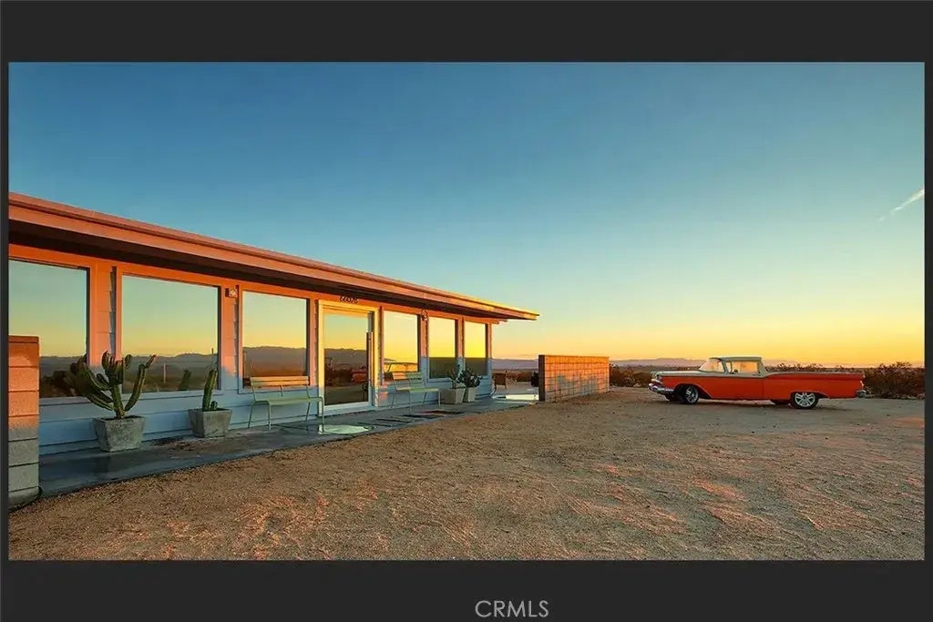 SKY RANCH SONORA: North Joshua Trees most sublime residence. Designed by renowned executive producer and visionary Chris Hanley, whose body-of-work over the last three decades has left an indelible imprint on modern culture American Psycho & Spring Breakers to name two in much the same manner that his more recent architectural visions in Joshua Tree have forever altered the Mojave Desert landscape. From The Invisible House to Sky Ranch Sonora and beyond emerge a modern urban design melding into the vast surrounding wilderness to create an unparalleled experience. Presently a permitted, high-grossing, year-round vacation rental, catering to the entertainment industry, the property can also be used as a private estate spread over 5 acres and fully-fenced for security. To the east stands government-owned land providing an additional privacy barrier. Custom pool, spa and sunbathing retreat positioned to gaze across undisturbed desert providing a true year-round indoor/outdoor environment. Wrap around patio perfect for yoga or retreats. Large enclosed private porch on the northside can be used variously as either office headquarters, a winter yoga room or an art, music or writing studio. Turnkey, fully-furnished, including a large collection of collectable original artwork featuring many films and more. In addition, the home is finished with state-of-the-art appliances, including a Nobilia/Leitch German kitchen, complete with Miele cooktop/oven and Bosch refrigerator and dishwasher. Bathrooms feature Duravit. Multi-zone Sonos audio throughout home and outdoors. Tall ceilings a