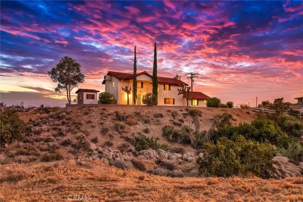 Nestled atop the highly coveted boulders in Western Hills Estates, this exceptional property spans three lots, offering 2.2 acres (3 lots in total) of scenic beauty and privacy. This spacious 2,273 sq. ft. home features 3 large bedrooms and 3.5 baths, with an attached 1-car garage. The ground floor boasts a light-filled living area with a cozy wood-burning fireplace, a dining room, a breakfast nook, and a well-appointed kitchen, all finished with charming Saltillo tiles. The main floor bedroom, complete with a private bathroom, offers comfort and convenience. Upstairs, two oversized bedrooms showcase breathtaking city lights and mountain views. One bedroom includes sliding glass doors leading to a second-story deck, while both are equipped with ceiling fans, plush carpeting, and private baths. The outdoor spaces include a fenced yard section and a covered patio with stunning valley views, perfect for outdoor relaxation. This rare opportunity in Western Hills Estates is not to be missed! Located in the heart of Yucca Valley, this home offers easy access to the region?s many attractions, including the iconic Joshua Tree National Park, just a short drive away. Enjoy local shopping, dining, and the unique charm of the nearby Joshua Tree village. Whether you're an outdoor enthusiast or looking for a serene retreat, this property is perfectly positioned to enjoy the best of the high desert lifestyle.