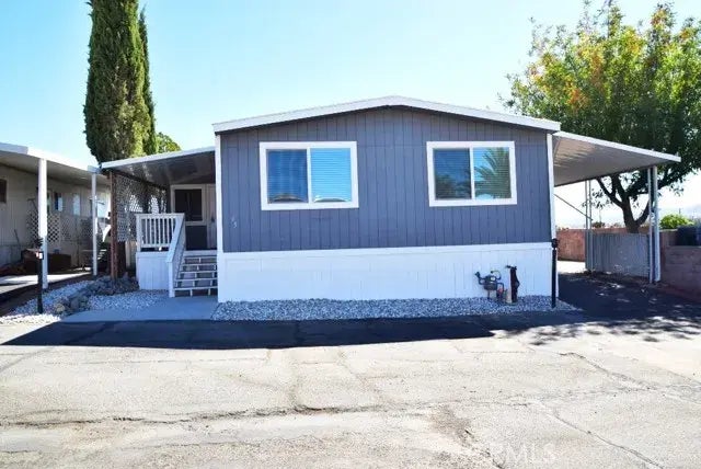 Yucca Valley Fairway Mobile Estates -with attractive features. The property has 2 bedrooms, 2 baths and has been completely remodeled and upgraded. New flooring, fresh paint, interior and exterior, all new appliances , visually appealing interior- a clean and modern look. New Mini-split units installed who provides efficient air conditioning and heating systems. They offer individualized climate control for different rooms, providing comfort and energy savings. Covered carport parking and easy access to the property. Enjoy the starry night and beautiful views from the front porch. SENIOR PARK.