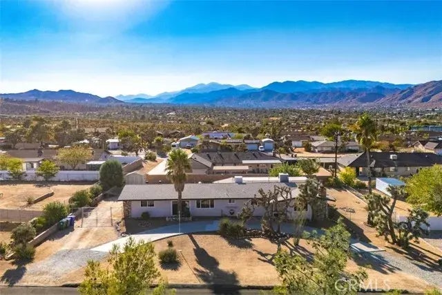 Welcome to your dream home in Yucca Valley! This delightful 3-bedroom, 2-bathroom residence offers 1,569 sq ft of comfortable living space, perfect for family gatherings or a peaceful retreat. Step inside to find a cozy living room featuring a lovely rock fireplace, creating a warm and inviting atmosphere for those chilly desert nights. The kitchen boasts plenty of storage and a convenient peninsula, ideal for casual dining or entertaining guests. Throughout the home, plantation shutters add a touch of elegance while allowing for plenty of natural light to fill the space. Enjoy the enclosed breezeway with double sliding doors that seamlessly connect indoor and outdoor living. You'll also find a sun-drenched enclosed patio right off the dining area which is equipped with a mini-split and dual fans for year-round comfort, inviting relaxation and inspiration. Outside, the expansive outdoor pergola style patio features plenty of shade and raised flower beds, perfect for alfresco dining or lounging under the stars. The property is adorned with mature landscaping and includes a convenient circular driveway leading to a spacious 2-car detached garage with a fully fenced backyard and shed for additional storage. Situated just moments from schools, dining, shopping, and the breathtaking Joshua Tree National Park, this home offers both tranquility and convenience. Dont miss your chance of own this charming oasis and experience the warmth and beauty of Yucca Valley living!