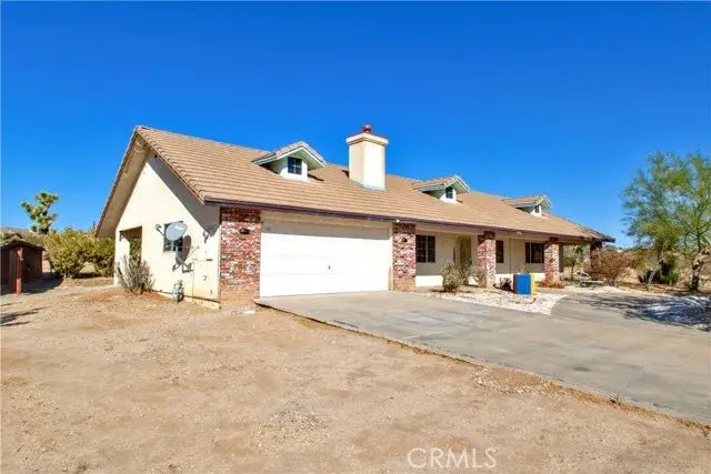 Discover the potential of this 3 bedroom, 2 bath home on Yucca Mesa Road! Fully fenced 1.25 acre, this home features a welcoming covered porch and covered patio, perfect for enjoying the views. The open floor plan seamlessly connects the living area, creating a warm and inviting atmosphere. Mature trees provide shade and greenery in the desert. Equipped with natural gas heating and air conditioning, plus an evaporative cooler for your year round comfort. Looking for storage, the attached double garage and detached oversized garage/workshop might be all you need. While the home needs some TLC, its a blank canvas for your creativity. Use your imagination to transform this space into your dream home. Don't miss this opportunity to create your own oasis!
