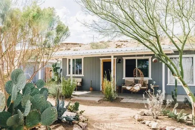 Welcome to your enchanting desert retreat! This charming 2-bedroom, 1-bath home spans 1,112 square feet and is situated on a sprawling 5-acre lot, offering an oasis of tranquility surrounded by stunning desert flora. Built in 1958, this remodeled gem showcases the perfect blend of vintage desert charm and modern convenience. As you step inside, you are greeted by beautiful Saltillo tile that flows throughout the open kitchen and living spaces, creating a warm and inviting atmosphere. The home is equipped with mini-split systems to ensure year-round comfort, making it a perfect getaway in any season. Step outside to discover your private outdoor living paradise. Enjoy al fresco dining from the pizza oven or gather around the fire pit for cozy evenings under the stars. The outdoor shower is a delightful touch, allowing you to rinse off after a day of exploring the desert landscape. Indulge in relaxation with your very own cowboy tub and spa, ideal for soaking away the stresses of everyday life. This property is located just a short drive down a dirt road from the main road and is near local Flamingo Heights favorites, providing easy access to the vibrant community while still offering a sense of seclusion. Whether youre looking for a permanent residence or a vacation rental, this Yucca Valley home is the perfect desert retreat, inviting you to experience the beauty and serenity of desert living. Dont miss your chance to call this oasis your own!