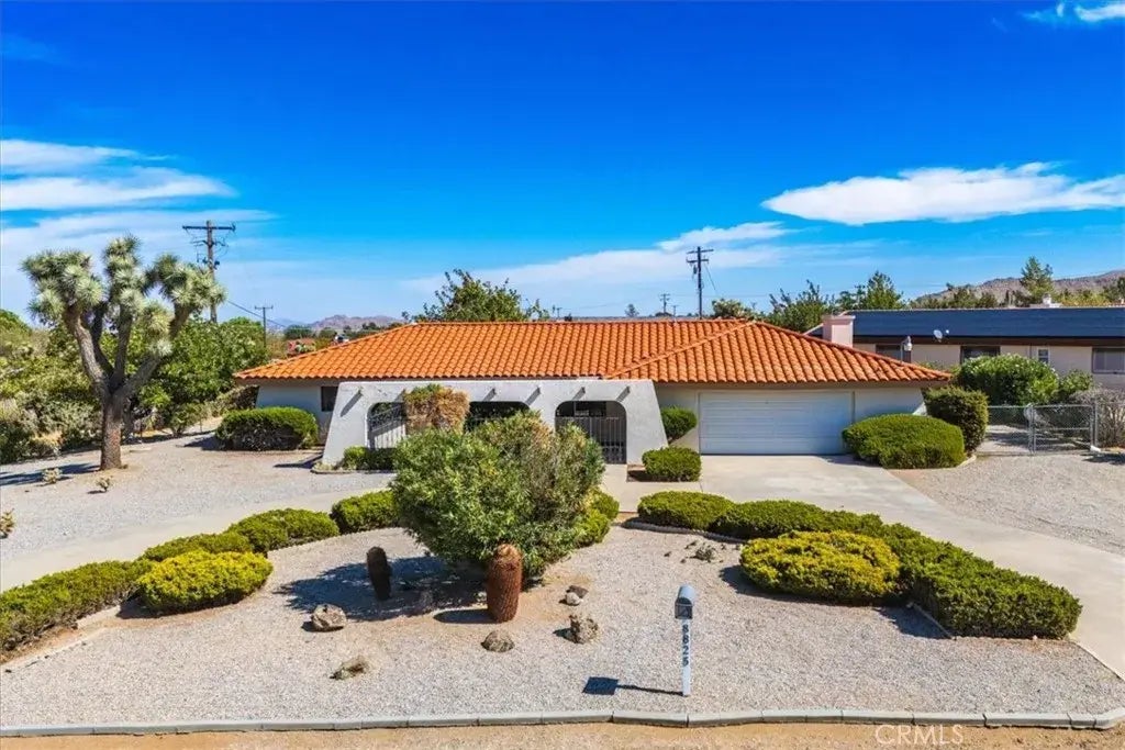 Charming Spanish-style home located in the desirable Sky Harbor neighborhood. This two-bedroom, two-bathroom property offers a flexible layout, with a private family room featuring a wood-burning fireplace that could easily be converted into a third bedroom. The home boasts vaulted ceilings, a ducted evaporative cooler, central air, and a two-car garage with laundry hookups and built-in storage. The spacious kitchen includes ceramic tile countertops, an electric cooktop, a Jenn-Air double oven, and a stainless steel refrigerator. The master suite features dual sinks, and a separate shower and commode. You'll find plenty of storage throughout the home with built-in cabinets and large closets. Relax in the sunroom, which includes a sauna, while still leaving plenty of space for lounging or activities. Outside, enjoy a fully fenced backyard with mature landscaping, large shade trees, and a clay tile roof. The covered, gated front patio adds to the home's Spanish charm, while the U-shaped pull-through driveway provides ample parking, including room for an RV or extra vehicles on the side of the home. With stunning mountain views and a tranquil setting, this home is a must-see for those seeking comfort and charm.