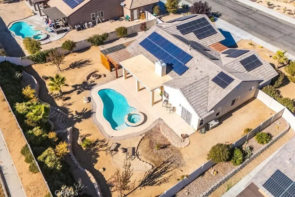 Welcome to this stunning POOL home with 4 bedrooms, 2 bathrooms with a potential 5th bedroom/office, offering 2,045 sqft of living space in the highly desirable Mesquite Homeowners Association neighborhood with WIFI controlled central air and natural gas heating. This amazing property includes a heated in-ground pool & spa with waterfall and LED lighting, fully fenced yard with 10 drive-thru side-gate, sensored exterior lights & a beautifully landscaped irrigated yard. The massive kitchen features a reverse osmosis system with new filters providing pure drinking water, granite countertops, stainless steel appliances, upgraded cabinetry and a walk-in pantry. The living room is highlighted by a cozy fireplace, offering a warm and inviting space for gatherings. The primary bedroom is a private retreat. French doors lead to the back patio, an ensuite bathroom with dual sinks, walk-in shower with glass enclosure, jetted tub, private toilet room, and a large walk-in closet with sensor lighting & upgraded closet systems. The other bedrooms are generously sized with sliding-door closets & upgraded closet systems. The guest bathroom offers dual sinks with a separate room for the shower/tub for added privacy. The laundry room has included appliances, granite countertops, a large sink, upgraded cabinetry, and natural gas/electric dryer hook-ups. The house features tile throughout and the bedroom carpets have been steam-cleaned. Outside, the backyard is massive and designed for enjoyment, featuring a newly painted grip cool-crete back patiokeeping the concrete cool for bare feet and pe