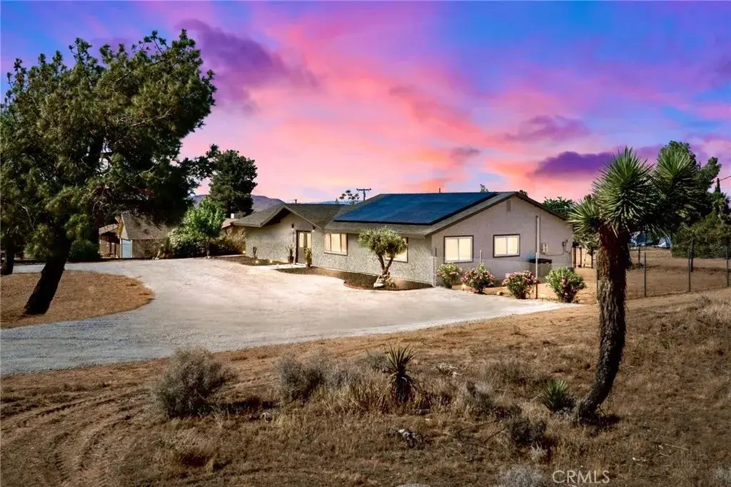 This beautifully renovated home in Sky Harbor offers a fresh take on modern living with its seamless open floor plan and thoughtful updates. Spanning 1,344 square feet, the residence features three bedrooms and two bathrooms, creating a comfortable space for relaxation and gatherings. The kitchen, a standout feature, is both functional and stylish with its oversized design, new appliances, sleek cabinetry, and quartz countertops with a dramatic waterfall edge. Extensive upgrades breathe new life into the property, including new flooring, remodeled bathrooms, energy-efficient windows, updated doors, a brand-new roof, modernized electrical and plumbing systems, new garage doors, a septic tank with updated leach lines, and refreshed landscaping. Every detail has been carefully considered to enhance both aesthetics and functionality. Set on over half an acre, the expansive outdoor space invites endless possibilities. Whether you're gazing at the stars in the clear desert sky or enjoying the wide-open landscape, the yard offers room for creativity and personal projects. Sky Harbor's prime location places you close to Joshua Tree National Park, where hiking trails and rock climbing opportunities abound. The area also hosts seasonal events like the Joshua Tree Music Festival and local art tours, making it an ideal spot for those who love community and outdoor adventures. Whether you're looking for a peaceful retreat or a base to explore the high desert's vibrant culture, this property delivers.
