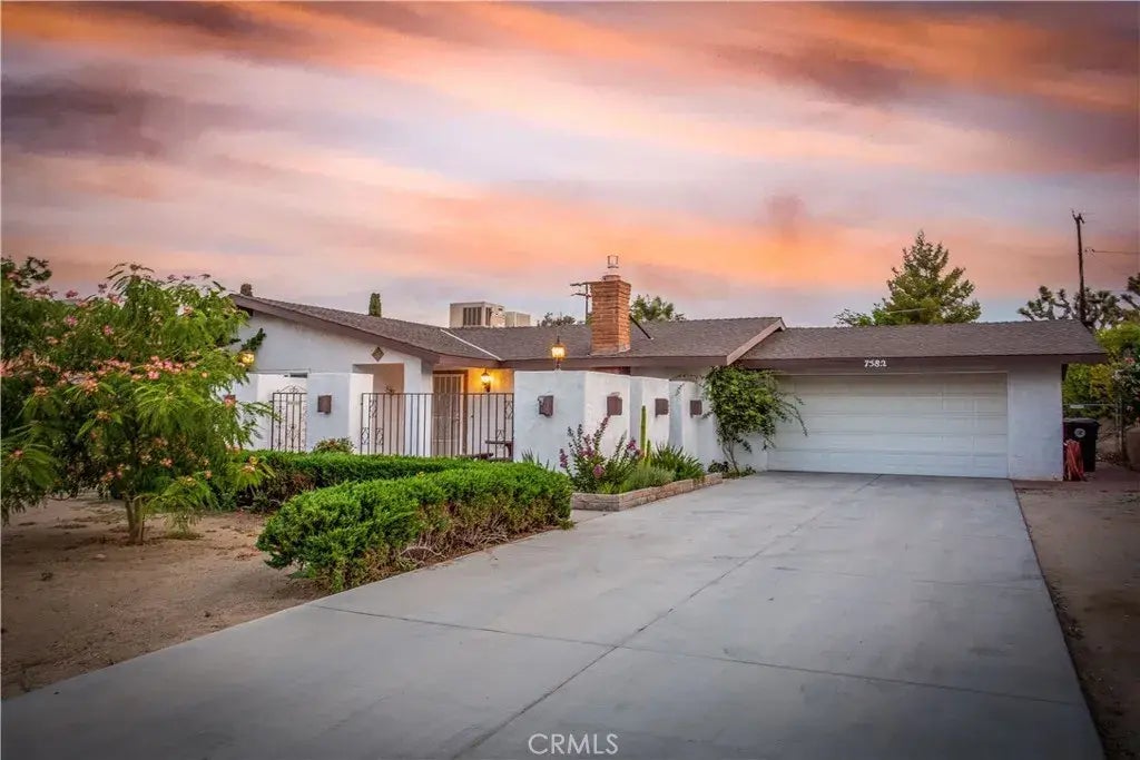 Welcome to 7582 Cardillo Trl, a lovely home & Active Airbnb located in the highly desirable Country Club neighborhood of Yucca Valley. This 3 bedroom, 2 bath corner lot property is nicely situated on nearly half an acre of land and features 1,584 square feet of living space with everything intentionally chosen to bring you the perfect desert home, airbnb or weekend retreat. As you step through the gated courtyard & inside the bright & airy living room you'll find high wood-beamed ceilings with wood warm wood-like flooring, a functional split-floorp?lan & tasteful boho-inspired decor to tie it all together. Just off the living room is a formal dining space anchored with a charming brick-faced fireplace and east facing window that lets in an abundance of natural light. The dining room flows effortlessly into the kitchen area comp?lete with granite countertops, stainless steel appliances, bright white cabinetry & recessed lighting. There is also a game-room/den just off the kitchen & living room, the perfect space for entertaining! Each room is well equipped & adorns large windows and ceiling fans. Outside you'll be delighted to find a fully fenced yard with a charming gazebo, multiple Joshua Trees and plenty of space to entertain or relax around a firepit on a starry desert night. Not to mention, this home has an attached 2 car garage with washer/dryer hook-ups AND a detached 2 car garage. Located only minutes from town, shopping, restaurants and cafes, 15 minutes to Joshua Tree and only 35 mins to Palm Springs! (Can be purchased fully furnished & stocked with supplies!) Come