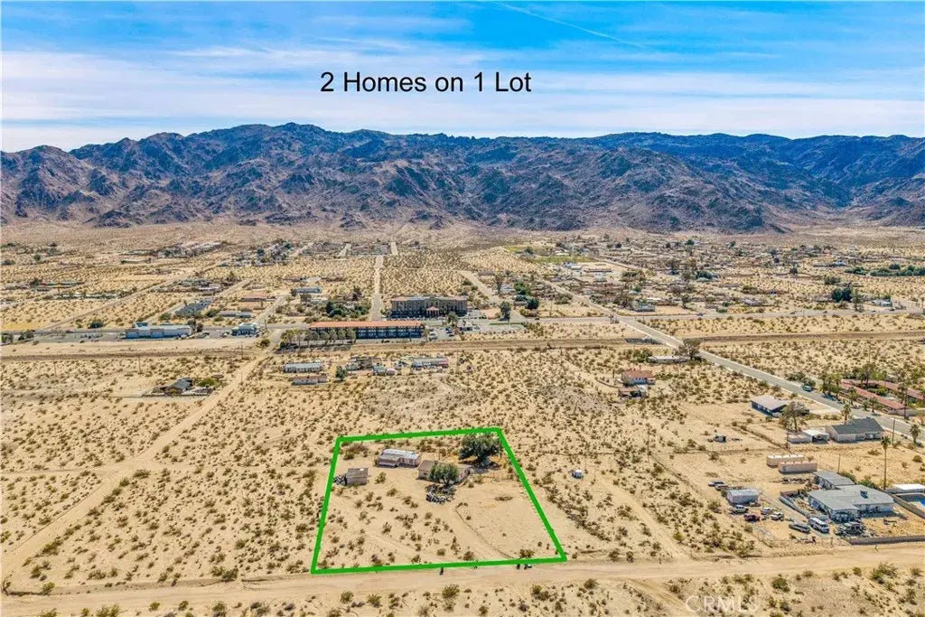 Investor Special! 2 Homes on 1 Lot 1.69 Acres in Town with Endless Potential! This prime investment opportunity features two homes on one lot, sitting on 1.69 acres in a great in-town location. With stunning mountain views and close proximity to all the conveniences of downtown 29 Palms, this property is ready for an investor looking to maximize returns. The main home is a 3-bedroom, 2-bathroom residence, approximately 954 sqft, while the second home is a 1-bedroom, 1-bathroom unit, approximately 683 sqft. Both homes need a full remodel, but the upside is undeniablewhether you're looking to fix and flip, create long-term rentals, or develop a short-term rental portfolio. Additionally, there is a detached garage, providing extra storage, workshop potential, or additional conversion possibilities. Why Invest in 29 Palms? Short-Term Rental Market With the city's flexible rental regulations compared to other nearby areas, investors are capitalizing on the steady influx of visitors heading to Joshua Tree National Park. Proximity to Key Attractions Just minutes from the park entrance, Tortoise Rock Casino, Project Phoenix downtown revitalization, and the Marine Corps Base, this location is highly desirable for both vacation and long-term tenants. Growing Economy & Infrastructure 29 Palms continues to develop, with new businesses, hotels, and local attractions increasing property demand. With multiple income streams possible, ample space to expand, and an unbeatable location, this 2-home investment property has the potential to generate strong cash flow.