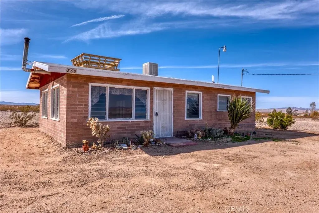 Nestled in the serene Desert Heights community of 29 Palms, this charming 520 sq. ft. brick cabin offers the perfect blend of vintage character and modern convenience. Built in 1955, the home sits on a spacious 5-acre lot with breathtaking desert and mountain views. Inside, you'll find vaulted ceilings with exposed wood beams, a cozy wood-burning stove, and abundant natural light streaming through large windows. The full kitchen provides ample space for cooking, while the bathroom includes a shower/tub combo, single sink vanity, and toilet. Step outside to the covered back patio or ascend the elevated viewing deckan ideal spot for stargazing and taking in the expansive landscape. For those with RVs, the property is equipped with 250-volt, 30-amp service and a dump hookup. With utilities already connected, this desert retreat is a rare findperfect for a weekend getaway, or investment property. Located just a short drive from Joshua Tree National Park, the renowned 29 Palms Art Gallery, and the vibrant Joshua Tree music and arts scene, this property is an adventurers dream. Enjoy hiking, rock climbing, and endless outdoor exploration by day, then experience breathtaking sunsets and star-filled skies by night. Nearby, the city of 29 Palms offers dining, shopping, and entertainment, along with the historic Oasis of Mara and the Marine Corps Air Ground Combat Center.