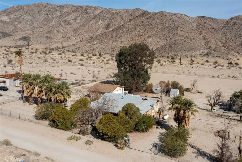Old-Western Rustic 5-Acre Oasis nestled up near a government-owned undevelopable mountain range to the north. Needs TLC/Remodel/Updating. Fully fenced property features majestic rustling palms and a variety of mature and fruiting flora, lengthy covered patios with arches and stunning golden hour light. More than enough space to embark on all of your homesteading dreams. 2-bed/2-bath home needs to be brought up to date/remodeled but is wrought with character that modern development can't match, including unique circular layout, walkthrough prep kitchen/pantry, and built-ins throughout. Master suite features massive walk-in closet and massive walk-in tiled shower. Detached two car garage has full laundry/storage side room as well as large enclosed closet for tools, with built in shelves throughout. Property operates on well water, under your own control and not connected to any water district and no water meter. Must see to take in the depth of this pre-hipster, true desert wild country vibe!