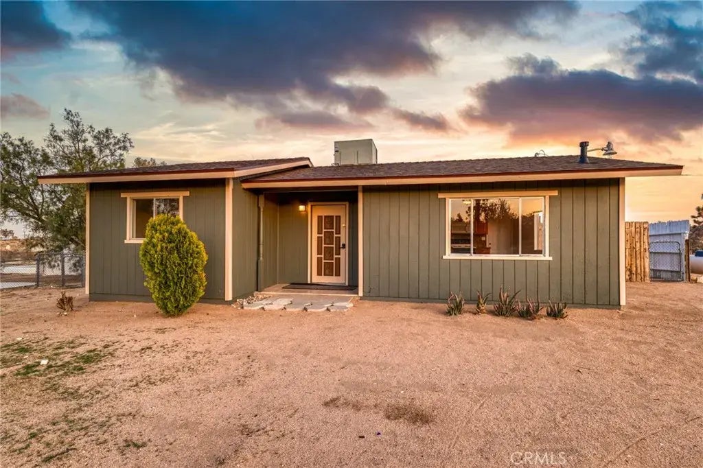 Tucked away in the tranquil East Flamingo Heights area of Yucca Valley, this delightful 544 sq. ft. desert retreat sits on 2.4 acres of breathtaking landscape, offering panoramic views of the rugged mountains and sprawling desert. Most of the property is fully fenced, with an additional smaller fenced yard that adds versatility and charm. Inside, the open-concept kitchen and living area exude warmth and character, featuring rich wood cabinetry, gleaming granite tile countertops, a deep sink, a propane stove, and a dishwasherall complemented by tiled floors and zoned heating and air conditioning for year-round comfort. The recently remodeled bathroom is a modern oasis, boasting sleek tile floors, a crisp white vanity, a shower/tub combo with a luxurious rainfall showerhead, and a convenient stackable washer and dryer. The bedroom is a serene sanctuary with vaulted ceilings, abundant natural light, its own zoned heating and air system, and a versatile bonus area that could be transformed into a cozy walk-in closet or a charming home office. Step outside to the inviting back patio, shaded by a rustic wood pergola and surrounded by mature trees that create a peaceful outdoor haven. Towards the back of the property, you'll find a separate unfinished structure with its own fenced areaperfect for a flourishing garden or keeping animals. This enchanting property is just a short drive from Joshua Tree National Park, the eclectic charm of Pioneertown, and local culinary gems like La Copine, offering the perfect blend of seclusion and accessibility to the High Deserts finest attractio