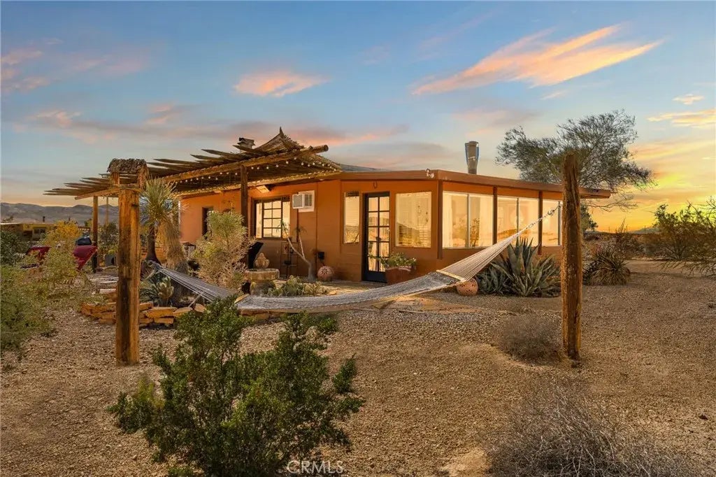 Now available for long-term lease, ADOBE is a fully furnished mid-century home located in the quiet and expansive Wonder Valley area of Twentynine Palms. Set on 5 fully fenced acres with a gated drive and sweeping 360-degree desert and mountain views, this property offers privacy, style, and comfort in one of the High Deserts most serene settings. The interior features Saltillo tile floors, beamed ceilings, a sunken living room with a stone fireplace, a walk-in shower, and a flexible office or sitting porchideal for remote work or quiet reading. The homes layout and southwestern-inspired details create a warm, inviting space filled with natural light. Outdoor amenities include a private hot tub, shaded lounging areas, a BBQ, fire pit, fire bowl, and a shared above-ground poolall set within a professionally designed landscape created by an award-winning LA-based architect. A sunset lookout point and ambient outdoor lighting complete the experience. This home offers the feeling of remote living while still being only 10 minutes from downtown Twentynine Palms, 15 minutes from the Marine base, and near The Palms restaurant. Some pets may be considered.