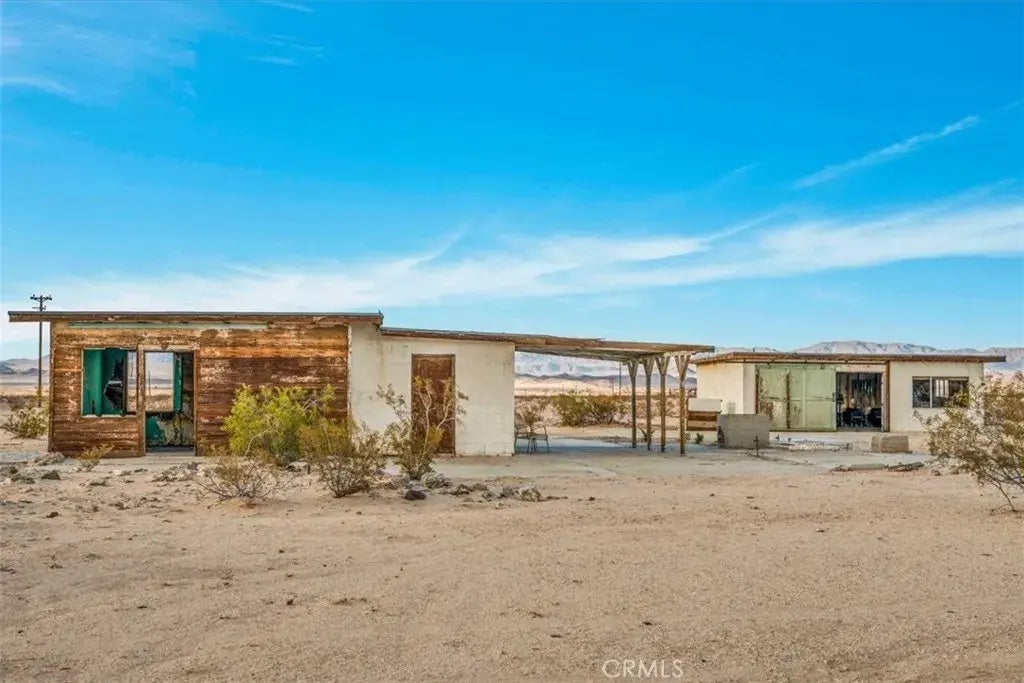 This nostalgic fifties homesteader, zoned single family residence, is ready for you to finish renovation. Set on 5 acres in the vibrant Wonder Valley neighborhood of 29 Palms. Enjoy stunning desert views of the adjacent Pinto Mountains, with a prime location only four minutes from Utah Trail/Park Boulevard to the East entrance of Joshua Tree National Park, and the revitalized downtown. Power is at the street. While the main house isnt yet rehabbed, it has incredible potential with some TLC. The charming, airy 700-sq foot garage has a new roof, and has been upgraded to feature a bathroom with new flush toilet and sink, and a tank water system for hauled water. A bar/dining area has its own cold-water sink. A small solar array charges a 12-volt battery system for a water pump and lights, and features a USB port and 2 standard wall outlets for charging devices. Atmospheric lighting makes it a great place to stay while revitalizing the home, or having your own private desert cantina-vibed clubhouse. The garages large sunny windows and sizeable barn door could make it an ideal artists studio. The cabin was once owned by the original Cactus Jack Jack Cones, the Flying Constable of 29 Palms. The property is 2 blocks from The Glass Outhouse art gallery and 10 mins from the Palms Restaurant. A fantastic opportunity to create your dream desert retreat! Address is for marketing purposes only, heading east on 29 Palms Highway, turn left on Cactus Jack Ave, second house on right.