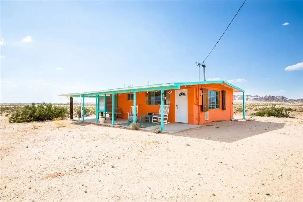 PRICE DROP $25,000! WOW, privacy and lots of quiet solitude are yours in this SINGLE-FAMILY RESIDENCE home (not a cabin) perched atop a small knoll in the colorful community of Wonder Valley in 29 Palms. With stretching vistas in all directions from this expansive 5-acre property, this CLASSIC block-construction home is a stylish 1-bed, 1-bath dwelling with covered porches, wood ceilings, a cozy wood stove fireplace, efficient mini-splits HVAC, a laundry with washer & dryer, cozy stylish kitchen, and more! Outside, relax in the spa and stargaze the night away, or sit around the fire pit. Don't miss the outdoor shower! Fenced yard keeps the pets nearby and the big 5-acre lot is sided by government land. Not far from the Palms Restaurant and a quick drive to downtown 29 Palms for food, fun, dining and the east entrance to the Joshua Tree National Park. Comes furnished, ready to go! Was a successful short-term rental with previous owner, come see this one!