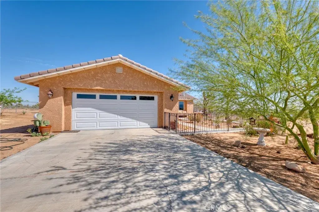 Tucked away on a generous 1.67-acre parcel in the peaceful high desert town of Yucca Valley, this beautifully maintained 3-bedroom, 2-bathroom home is a perfect blend of comfort, style, and wide-open space. With 1,737 square feet of thoughtfully designed living space, an attached 2-car garage, and striking curb appeal, this home welcomes you with open arms and endless desert charm. Step inside and be greeted by the timeless elegance of travertine tile flooring, vaulted ceilings, recessed lighting, and natural light that dances through every room. The formal living and dining areas are gracefully combined, creating a welcoming space near the front of the homeperfect for hosting or relaxing by the warmth of the wood-burning fireplace beneath a ceiling fan that stirs the gentle desert breeze. A second living area offers an inviting ambiance with a second fireplace clad in matching travertine, built-in speakers for surround sound comfort, and a relaxed connection to the heart of the home: the kitchen. Here, culinary creativity comes to life with granite countertops, stainless steel appliances, a spacious center island with bar seating, and an abundance of cabinetry. French doors open to the expansive backyard, blending indoor and outdoor living effortlessly. The private primary suite is a cozy retreat all its own, with plush carpeting, a romantic wood fireplace, and a spa-like en-suite bath featuring dual sinks, granite counters with mosaic tile detail, travertine flooring, a shower/tub combo, private water closet, and a large walk-in closet. Two additional bedrooms offer comfo