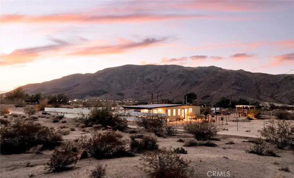 Where boulders rise and mountains frame the horizonthis design-forward desert retreat offers privacy, beauty, and soul. Tucked on the border of Joshua Tree and Twentynine Palms, this 1-bedroom, 1-bathroom home sits on 5 serene acres with panoramic views of the Bullion Mountains to the north and boulder-dotted ridgelines of Panorama Heights to the south. With 360 natural beauty and a sense of quiet seclusion, this is a rare offering that blends midcentury lines with modern ease. This home is offered fully furnished (with a few exclusions), making it an ideal option for those seeking a primary residence, vacation getaway, or a high-performing short-term rental. Inside, the open floor plan creates a bright, flowing interior, where every window offers a stunning desert view. The remodeled kitchen features sleek quartz countertops, modern cabinetry, and an open connection to the dining and living areas. The Jack-and-Jill bathroom opens to both the bedroom and dining area, offering flexibility for guests and functionality for daily living. A sliding glass door leads from the living room to a shaded front concrete patioperfectly placed for morning sunrises and cool evening breezes. Outdoors, the property has been thoughtfully sculpted to create a backyard experience like no othercomplete with meandering walking paths, shade structures, a jacuzzi, lounge and dining areas, and mature desert vegetation. Partially fenced for added privacy and comfort, this home is ideal for quiet retreats, weekend getaways, or full-time desert living. And with a shared well, you'll enjoy the benefit o