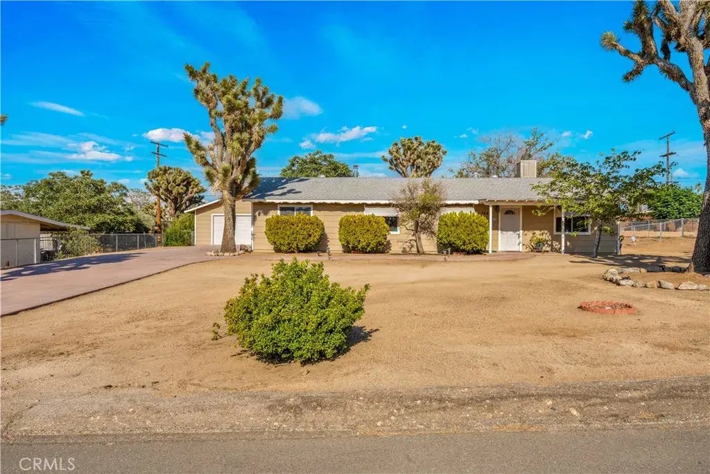 Welcome to this charming 2-bedroom, 1-bath home in Yucca Valley, offering 1,456 square feet of comfortable living space. Inside, you'll find a spacious layout with a versatile bonus room, perfect for a potential third bedroom, home office, or an additional bathroom. A highlight of the home is the large laundry room, complete with a utility sink and plenty of cabinet space. The detached garage offers endless potential as a workshop or creative space and features a 220V outlet along with a durable epoxy and polyurethane coated floor. Step outside to enjoy the inviting backyard, which includes a covered concrete patio with outdoor lighting, perfect for relaxing or entertaining under the desert sky. With ample yard space to customize and enjoy, this property is a great opportunity for homeowners, investors, or anyone seeking flexible space in a peaceful setting.