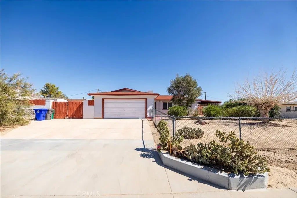 Charming Home with Desert Views & Workshop. This inviting single-story ranch-style home features 3 bedrooms, 2 bathrooms, and a bright enclosed sunroomperfect for relaxing or entertaining. The interior includes a traditional kitchen, vinyl and carpeted flooring, and ample natural light. Enjoy an attached two-car garage, spacious backyard patio, and a large workshopideal for hobbies, DIY projects, or extra storage. The fully fenced front and back yards offer privacy and security, with plenty of space to enjoy the serene desert surroundings. Set on a generous lot, the property boasts unobstructed desert and mountain views, offering a peaceful, secluded feel. Central heating and cost-efficient evaporative cooling ensure year-round comfort. Home is on a septic system with public water access. Located near schools, parks, and the lively Downtown 29 Palms shopping district, this home blends privacy, functionality, and natural beautyperfect for those seeking space and tranquility in the desert.