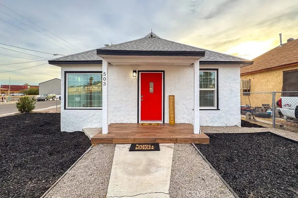 Check out this newly renovated historical home on a corner lot! This 3 bedroom 2 bathroom home is fully fenced with low maintenance landscaping! The red dog house out front symbolizes Snoopy's dog house- it has been said the creator once lived here! The old charm is still felt here with just the perfect amount of renovation! The exterior has had a fresh coat of paint & several new windows. Step inside to a bright and airy open concept great room! The dining space features a cozy bay window perfect for extra seating or a breakfast nook. In the kitchen is new butcher block countertops, beautiful blue cabinetry and white appliances- plus a large pantry! A large indoor laundry room steps out to a private patio area. Side parking to keep you off the street or to park your extra vehicle/toys! Just minutes from the Colorado River! Don't miss out on this one!