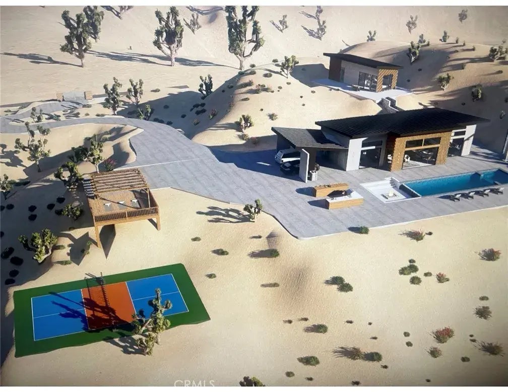 Rare Custom Hilltop Luxury Retreat Yucca Valley, CA $2,499,000 | 3 Beds | 3.5 Baths | 1,976 Sq Ft | 2.44 Acres | Guest House | Pool | Pickleball Court | 2 EV Chargers Incredible opportunity to own a rare, private luxury retreat in Yucca Valley with unmatched views and resort-style amenities. This 3-bed, 3.5-bath custom home sits on 2.44 secluded acres with a guest house, infinity-edge pool that cascades into a massive in-ground fire-pit, A unique 12-ft poolside waterfall shower, a private outside off-suite couples tub with separate shower for an under the stars experience. Enjoy a private pickle ball court, an amazingly large outdoor kitchen, an over-the-ledge yoga deck, and 2 EV chargers. Many windows throughout will bring in all natural light and panoramic views from every room. Interior features include Wolf appliances, custom cabinetry, polished concrete floors, and 1014 ft sloped ceilings. Plans are APPROVED and builder is ready to start construction . Buyer can still choose stone, tiles, colors, finishes, and more to make it your very own custom luxury hill top retreat. Located just a short drive from Joshua Tree National Park, Pioneertown, Palm Springs, and Big Bear, this is one of Yucca Valleys most exclusive luxury offerings EVER! Developed and offered by a California licensed Real Estate Broker who is also a licensed California General Contractor. This project blends expert construction with thoughtful, high-end design. Disclaimer: All photos and videos, including interior and exterior renderings, colors, materials, lifestyle imagery, and location content, are fo