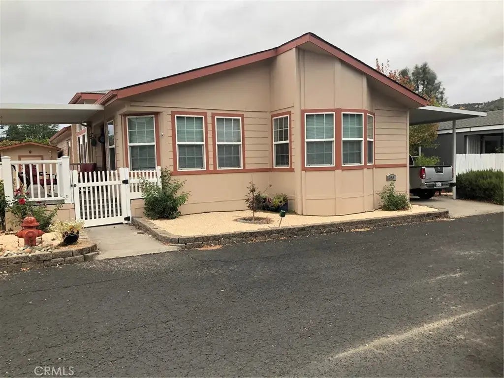 FULLY FURISHED 3 BD/2BA MANUFACTURED HOME! Begin your day over coffee, seated in your breakfast nook enjoying your view of the wooded area right outside. Bring your oohs and ahs to this surprising 1562sf home in Lake Village Estates a 55+ community in Clearlake Oaks. Step through the front door into a spacious living room. To the right is a formal dining room surrounded with windows, and leading to a plus-size kitchen featuring abundant cabinets, a convenient island, a double-oven gas range, microwave, dishwasher, refrigerator and a pantry. The laundry room includes a broom closet, a small desk and an upright freezer. Of the living room, through double doors, is a second bedroom (or space crying out for your special need or hobby) with French doors opening onto a quiet, shaded and paved patio area. Down the hall is a third bedroom. The Master bedroom suite is yet another surprise - massive, with a full bath featuring double sinks, heated jacuzzi tub, plus a stall shower. But wait! There's more! The side and back yards are fully fenced and include high quality, professionally installed artificial turf for maintenance free beauty and utility. An 8 x 15 shed has been fully insulated and wired, with shelving and a large tool chest filled with tools in like-new condition. Lake Village Estates modular home park is fully fenced and gated for your privacy and safety, and features a swimming pool and a clubhouse with ping pong table, pool table, full kitchen, library, large screen TV, and furnishings for your next party or group relaxation.