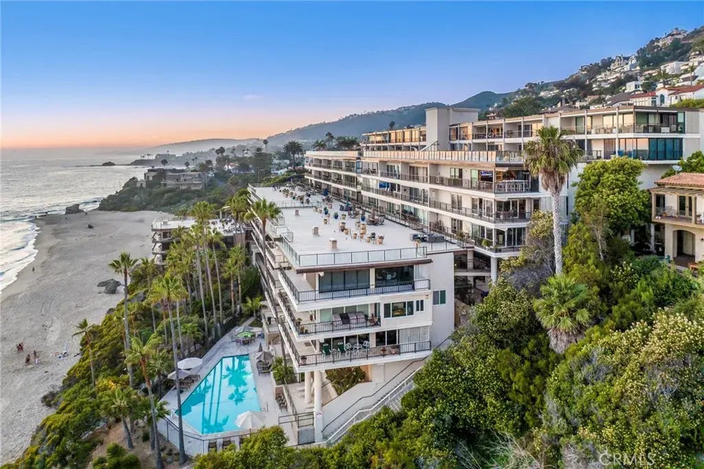 An opportunity to own a penthouse-level unit at the Laguna Royale - one of the largest in the community with expansive ocean and Catalina views to match. Available for the first time, this approximately 2,240 square-foot condominium presents four bedrooms and three full bathrooms in addition to an open Pacific-facing main living area. Two units were combined with care to create a smart, modern floor plan which lends itself well to this property serving as a year-round residence or a lock-and-leave vacation pied-a-terre. Curated with the coastal California lifestyle in mind, the main living area is centered around a sitting section with immediate access to the large balcony via two sets of oversized sliding doors. The adjacent dining room and kitchen, with a suite of stainless steel appliances, including a wine fridge and breakfast bar seating, create a functional floor plan. Accessed via double doors, the ensuite primary bedroom faces the Pacific, offering the perfect backdrop to wake up to. The secondary bedrooms are all of ample size, with two located in the rear of the unit for privacy and one with fantastic ocean views. A functional home office with a built-in desk and a casual sitting area complete this space. Additional amenities of this modern residence include updated bathrooms, central air conditioning, built-in storage, motorized blinds, and two parking spaces. Laguna Royale is known for its amenities, from 24-hour security to a pool, spa, gym, and pathway directly to the sand below. The areas famous West Street Beach is just beyond the communitys boundary, with t