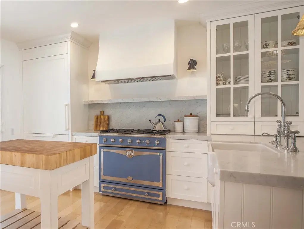 VILLA PACIFICA | LAGUNA NIGUEL Step inside this remarkable coastal retreat through the custom Dutch door, designed to capture refreshing ocean breezes, and you'll instantly realize you've discovered something extraordinary. Impeccably remodeled, this exquisite single-family home offers 2 bedrooms, 2 bathrooms, a den, and is not age restricted. Prepare to be captivated by the magnificent, luxurious, and thoughtfully designed features of this residence. The custom Shaker cabinetry in the traditional kitchen is a true masterpiece, adorned with honed 2" mitered white Carrara countertops and a stunning backsplash with a floating shelf. The centerpiece of the kitchen is the dual fuel Provence Blue La Cornue range (electric oven, gas burners) and a custom range hood featuring Venetian plaster and a Zephyr blower, complimented by the 4" end grain maple butcher block top island. Other notable appliances include a built-in Liebherr built-in refrigerator, Bosch Super Silent dishwasher, Viking microwave drawer, and a convenient coffee bar. The Rohl Shaws Lancaster Fireclay sink paired with the Perrin and Rowe faucet adds a touch of elegance. To top it off, you'll find a custom walk-in pantry enclosed by lovely French doors. Throughout the home, the Garrison thick wear layer engineered natural maple floors create a light and airy atmosphere, enhancing the overall aesthetic. The master bedroom has been tastefully updated, featuring a beautifully designed walk-in closet with custom-built doors. The master bathroom boasts a custom Shaker vanity with a honed white Carrara countertop, a Rohl