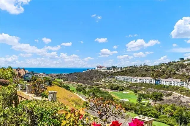 Beautiful fully furnished and equipped home for lease in 24-hour guard gated Ritz Pointe, Dana Point - Monarch Beach. This lovely home boasts panoramic ocean views overlooking the Monarch Links golf course, with stunning ocean, city lights, Saddleback mountains, and unforgettable sunset views. This remodeled and turnkey residence offers three bedrooms, three full bathrooms, and one-half bath. An open and inviting floor plan features a completely remodeled gourmet kitchen with a huge center island, granite countertops, stainless steel appliances, custom cabinets with soft-close drawers, and a large walk-in pantry. The primary suite is pristine, spacious, light, and bright, with a large retreat, which is perfect for a home office, den, or study. Enjoy absolutely spectacular ocean and golf course views from the generously sized balcony just off the primary bedroom, accessed via a French door. This home is wonderful for entertaining because of the open floor plan AND the large, well-maintained lushly landscaped yard. The backyard is so serene and calming. It gives one a sense of peace and tranquility. There is a gazebo and ample outdoor seating for dining al-fresco, beautiful flowering plants, a grassy lawn area, mature fruit trees, and a stunning unobstructed view seating area overlooking the golf course toward the ocean. You'll also enjoy a custom built-in BBQ center with ice storage, cabinets, and a stainless steel grill. This beautiful home is within walking distance of Salt Creek Beach by way of a neighborhood path that takes you directly to the beach through the community