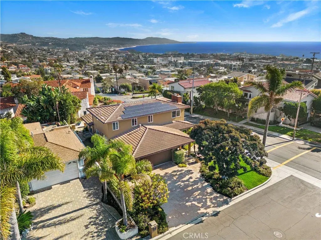 This home reveals the tranquility of its seaside setting with a panoramic coastal view of the Capistrano Bay from the 'Upper Lantern Village' neighborhood of Dana Point. Enjoy the azure expanse of the Pacific Ocean as its backdrop. As you step through the front door, the expansive 2,608 square feet of open-concept living space unfolds before you. The interior, bathed in natural light, with high-end finishes, and a palette of neutral tones accentuates the panoramic views visible from every vantage point. The heart of this residence is its newly remodeled chef's kitchen, with quartz counters and top-of-the-line stainless steel appliances, opens to the great room with coastal vistas that serve as an ever-changing backdrop. With three bedrooms upstairs, each offering resplendent views. Awaken to the sight of sun-kissed waves from your Primary bedroom retreat. Stepping outside; enjoy the meticulously landscaped grounds, where an award-winning design embraces sustainability and aesthetic allure. An outdoor kitchen takes center stage, inviting al fresco dining against the backdrop of the coastal and bay views. Gather around the cozy fire pit for intimate conversations. Adding a touch of environmental responsibility, the home is equipped with wholly owned solar panels, ensuring low-cost eco friendly energy. There are also built-in speakers in all primary rooms and a whole house water filtration system. In a locale where convenience meets coastal charm, this home is just blocks away from fine dining, bluff top hiking, local shopping, harbor and beach activities and entertainment. It