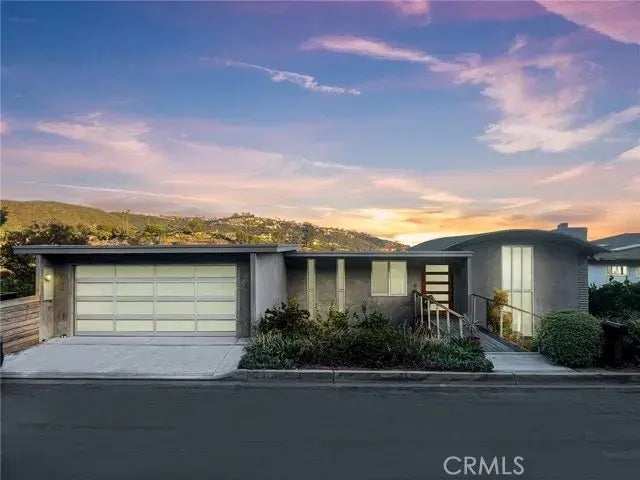 Panoramic ocean view home in the coveted neighborhood of Temple Hills in Laguna Beach. This stunning four-bedroom, two-bathroom Mid-Century Modern residence offers unparalleled ocean views from almost every room, providing a serene and picturesque living experience. As you step inside, you'll be greeted by freshly painted interiors. The main entry level features a spacious living room with ocean view balcony and a cozy corner gas fireplace, perfect for relaxing evenings. Adjacent to the living room, the formal dining room offers a sophisticated space for entertaining guests. The ocean-view kitchen is designed for maximum functionality. The main floor also includes a convenient bedroom, a full bath ideal for guests, a laundry room, and a home office. Additionally, the two-car garage features an electric car charging station and direct access to the home. Descend to the lower level, where you'll find an oversized primary suite with a gas fireplace and balcony that serves as a luxurious retreat. Two additional bedrooms and a full bath complete this level. Situated on a large street-to-street lot, the outdoor spaces are perfect for enjoying the coastal breeze and stunning sunsets. In addition to its beautiful features, this home is located within a top-rated school district.