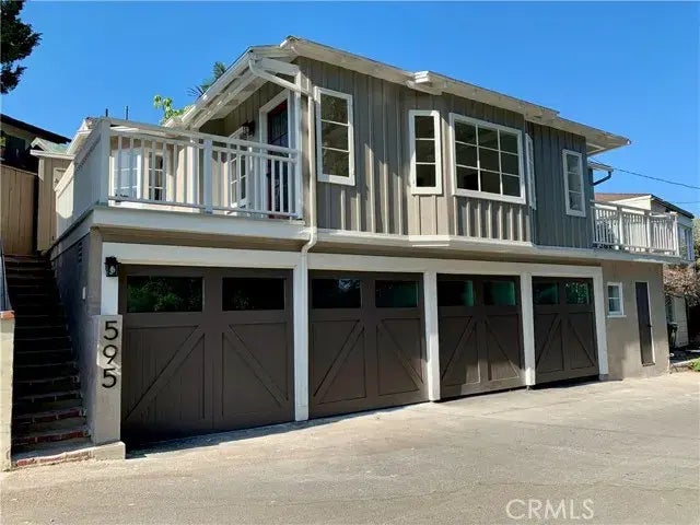 Complete rebuild/addition finished in 2020; includes all new plumbing, electrical, & HVAC with AC, Registered historic, Original refinished floors, Electric vehicle chargers installed in each garage bay, High efficiency tankless water heater, Air conditioning with WiFi compatible smart thermostat, Gas fireplace with wireless remote. Beautiful details and finishes throughout. Kitchen is totally new, top of the line cabinets, Samsung appliances, quartz countertops, skylights, recessed lighting. Ceiling fans in each room, living room has quaint cottage casement windows that fully open, a new gas automatic fireplace, 2 decks upstairs. Floors are wood, and some vinyl wood look, and tile in baths. New A/C added. Wonderful exposed beam ceilings, all spaces are white and light and bright. All redone 2 car garage, 2 separate automatic garage doors, epoxy floors, house has new tankless water heater. Peek-a-boo ocean views, lovely green tree and hills views. Two bedrooms are downstairs, the master is upstairs. Master bath has a large rain shower head, lower full bath has the same and a bathtub and dual sinks. Beautiful quartz and tile details, high end fixtures. Walk to the beach and into town easily.