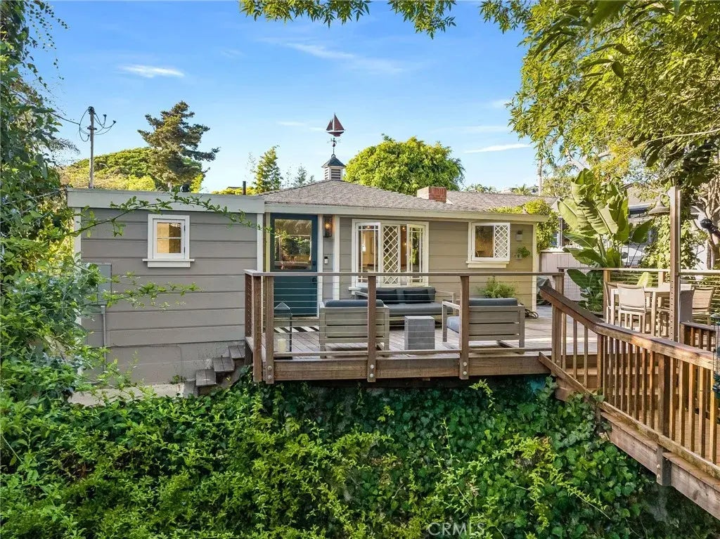 Centrally located on a large and unique parcel on one of the most desired streets in the Laguna Beach Village sits 520 Oak Street. Walking through the artisan brickwork entryway, you are greeted by a bridge surrounded by lush and diverse foliage crossing into this enchanting, private property. The home nods to the simplicity of yesteryear with unique design details, but has all the luxurious appointments one would expect in a modern home. The kitchen has been thoroughly updated to host fun-filled gatherings and features high-end appliances, a farm sink, and an island open to the living room. Leathered, quantized countertops are a wonderful touch. The primary bedroom is a beautiful place to relax and unwind with a generously sized en-suite bathroom. A secondary bedroom and bathroom is the perfect place for guests to retreat. The backyard is enviable. Stepping down the Kayu Batu wood stairs, which run the entire length of the rear house, it is ideal for outdoor dining and entertainingthe privacy is virtually absolute and begging for memories to be created. A cedar hot tub is perfect for those chillier California nights. Opportunities to purchase a residence on Oak Street are few and far between - dont miss your chance to make this slice of paradise yours.