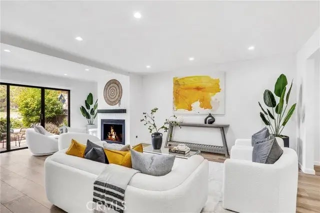 Coastal Retreat near Capistrano Beach and ideally located near Doheny Beach and Dana Point harbor! Mill Pond is a unique gated community situated around a central park theme of streams, ponds, and mature trees. Nestled within the serene, private community is this beautifully remodeled two-bedroom, two-and-a-half-bath home offering an exceptional living experience. Located in the picturesque hills above Capistrano Beach, the home boasts a tranquil setting and contemporary elegance across its spacious 1,449 square feet. Upon entry, a welcoming foyer adorned with a modern chandelier leads into an expansive great room. This open-concept space is the heart of the home, featuring a newly upgraded gas fireplace with a floating hearth and new flooring, creating a warm and inviting atmosphere. Sliding doors off the living area open to a private patio, ideal for unwinding and enjoying views of the meticulously maintained community landscaping and peaceful water views. Adjacent to the living room, the upgraded chefs kitchen is a culinary delight, featuring a cozy breakfast nook, perfect for morning coffee, and floor-to-ceiling cabinetry for ample storage. The first floor is rounded out by a convenient half bath and a coat closet with deep storage space. Upstairs, the spacious primary bedroom serves as a true sanctuary with a private balcony to take in the ambiance of the park and water views, also featuring soaring ceilings, built-in linen cabinets, a walk-in closet, and an elegantly upgraded en-suite bathroom. The primary bath is outfitted with quartz countertops, dual sinks, and a l