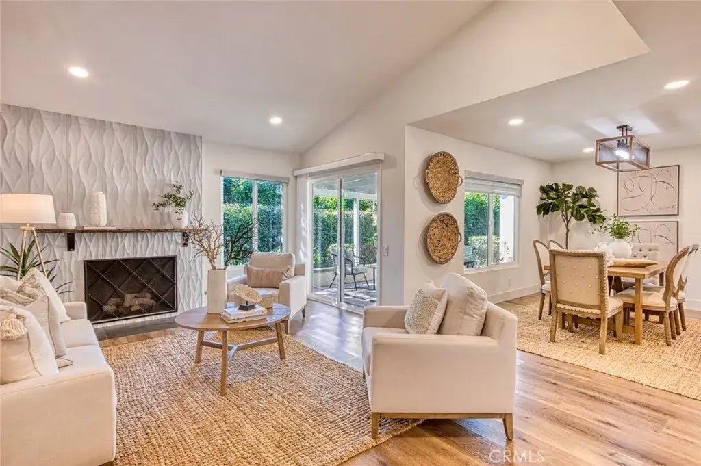 Absolutely beautiful, single-level Casa Narcisco model in the 55+ Casta del Sol, guard-gated community. This meticulously maintained home has been completely remodeled and not a detail was missed. With no interior steps, this light and bright home boasts an open floor plan featuring three bedrooms, and two baths, a large living room with gorgeous tile work surrounding a fireplace, and a spacious dining area. The kitchen offers sophistication and functionality with deep, white shaker soft-close cabinetry, pots and pan drawers, a spice drawer, a large island with plenty of storage, distinctive tile backsplash, newer gas stove, dishwasher, a newer refrigerator, and multi-function microwave. The spacious primary suite overlooks a grassy area and boasts a luxurious bath with shaker cabinetry, quartz countertops, dual sinks and a gorgeous step-in shower. Down the hall are two additional bedrooms with a beautifully appointed bath and linen storage and an individual laundry room. The exterior was recently painted and additional interior attributes include vaulted ceilings, fresh interior paint, neutral luxury-vinyl plank flooring throughout, electric window shades, designer lighting, all new windows and sliders, newer water heater, updated electrical and plumbing and so much more. Entertain or relax on the private covered patio in the back or on the large, private side yard. You will appreciate the tranquil cul-de-sac location with convenient gate access, and close proximity to one of the community pools, tennis and the homeowner garden. Enjoy all that this amazing community has to