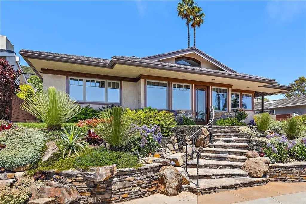 Incredible opportunity in the ocean front community of Three Arch Bay. Sophisticated detailing throughout this Craftsman style home with a tropical feel, affording coastal relaxation and comfort as a primary or vacation home. Unique single level, combined with views in the distance of blue water and Dana Point bluffs. Custom front door with artistic etched glass leads into the open living room with vaulted ceiling that naturally flows into the kitchen and dining spaces. Flooring of solid hardwood through the living rooms. Granite kitchen features large center island, stainless steel appliances, Mahogany cabinetry and pantry storage. Formal dining room off kitchen, built-in desk niche work space and a comfortable den retreat space with wall-to-wall cabinetry. Primary bedroom & bath suite features a walk-in closet, plus two additional closets, several built-in dresser drawers with wood detailing and a beautiful bathroom with dual vanities and oversized shower. Two additional bedrooms and adjacent bathroom down a separate hall with skylight. Solid, wood framed, dual paned windows and French doors all look out to greenery views of colorful landscape and swaying palms. The private rear patio with flagstone, fountain, built-in barbecue with bar seating, outdoor fireplace is a wonderful outdoor oasis. The front exterior features and ocean view covered porch, grassy front yard. Direct access, two car garage with epoxy flooring, storage. The gated community of Three Arch Bay enjoys luxury community amenities, including on site management, 24 hour guard gated upper and lower gates, c