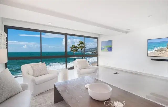 Oceanside private community of Blue Lagoon Villas overlooking one of Laguna Beach's best beaches next door to the Montage and access to Victoria Beach! This property is considered the most desirable location in the community, offering both North and South coastline whitewater views, Catalina Island along with picturesque hills and city night light views! Relax with the crashing sound of the surf and the occasional surprise of whales and dolphin swimming by. Experience the most colorful and magnificent sunsets. Resort living at it's best! Offers expanded floor plan with open lower level with full bathroom, could be used as den/3rd bedroom, and great patio. Spacious living room with spectacular whitewater views opening to dining area and kitchen with upgrades. Light & bright upper level primary bedroom suite with upgraded bathroom, ocean views, walk-in closet. Secondary bedroom suite and bath with views of ocean, hills and Montage. Blue Lagoon community amenities include 2- year round heated swimming pools, tennis/pickleball court, fitness center, outdoor kitchen & cabana in upper community center. Close proximity to restaurants, Montage Spa & Resort, The Ranch, and golf.