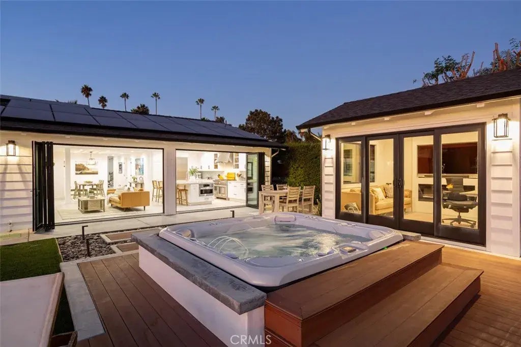 Welcome to this beautifully remodeled 5-bedroom, 3-bathroom sanctuary, nestled in the hills of San Clemente with breathtaking panoramic ocean views. This meticulously updated single-level home offers a rare combination of privacy, luxury, and modern living, all while being just minutes from the beach. Step inside to discover an open-concept living space that seamlessly blends style and comfort. The chef's kitchen is a true standout, featuring high-end Thermador appliances, sleek quartzite countertops, and an oversized single slab quartzite island with additional storage perfect for both cooking and entertaining. The spacious living and dining areas flow effortlessly to the outdoors through dual 11ft bi-fold doors , where you'll enjoy stunning sunsets and ocean vistas. The homes layout is ideal for both family living and entertaining, with five generously-sized bedrooms and three beautifully remodeled bathrooms. The master suite offers a peaceful retreat, with large windows that frame the spectacular views and an en-suite bathroom with luxurious finishes. Outside, the expansive backyard is an entertainer's dream, with a sparkling jacuzzi, a cozy fire pit, and plenty of space for al fresco dining and lounging. Adding to the charm, a fully functional "she shed" is tucked away in the backyard, offering a private office space, art studio, or quiet retreat. This home is equipped with the latest in sustainable living, including solar panels and electric vehicle charging via two 220v hookups in the garage, ensuring energy efficiency and cost savings. Additional features include hi