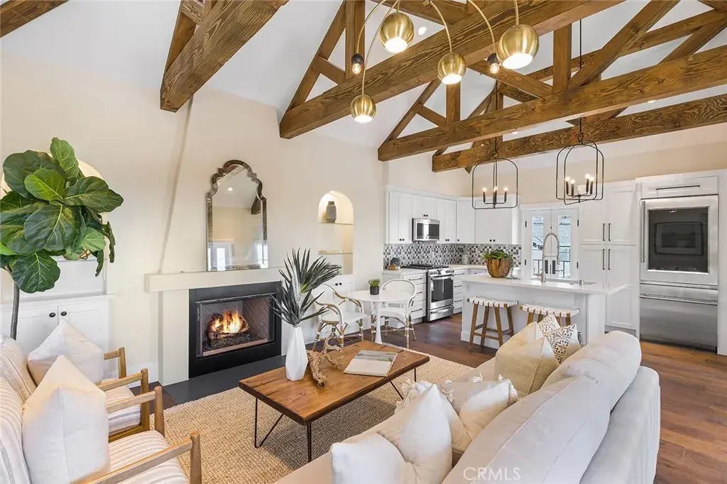 The epitome of modern luxury intertwined with old-world allure in this captivating pied--terre nestled in the heart of the coveted "Flower Streets" in North Laguna Beach. Each unit lives like a SFR with the most inviting outdoor areas designated to each home. This stunning property was recently completed and underwent a major down-to-the-studs meticulous remodel incorporating all new systems and surfaces, AC, custom lighting, and highly upgraded interiors which harmoniously blend with the timeless Spanish exterior. Incredible opportunity to enjoy this exceptional coastal retreat that honors its 1930s era but is fully enhanced with the conveniences of today. "Casita Del Huesped" enjoys panoramic ocean views from the upper entertaining areas and rare 230 sf rooftop deck. Enter through a Dutch door to the grand living room showcasing a gorgeous fireplace, vaulted beamed ceiling, convenient powder bath, and numerous French windows that open to ocean breezes. The open kitchen is a culinary dream with high-end stainless appliances. Occupying the entire lower level is the well-appointed master bedroom suite with beautiful French doors and a spacious walk-in closet. Each unit has their own washer and dryer, a separate secure storage room, and assigned parking (street parking also available). The impeccable attention to detail truly sets this home apart as a showcase of refined living. Dont miss this rare gem on one of the best streets in Laguna Beach! (Unit is unfurnished.)