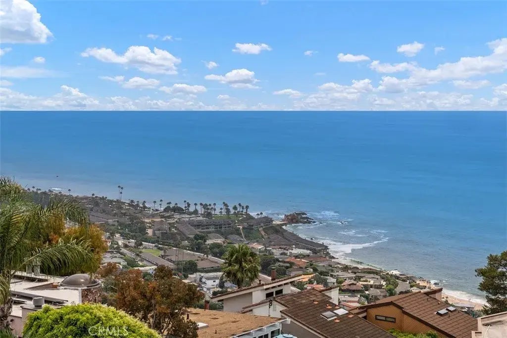 Experience awe-inspiring, panoramic views of the ocean and sunset from nearly every room in this sophisticated coastal home, which is located on a quiet dead-end street overlooking the Montage Resort just to the south. Taking full advantage of its commanding hilltop location, the residence features a dramatic ocean view living room with sit down views, presented through a wall of large windows and dual sets of sliding glass doors. A whitewashed, coastal-themed interior ensures that nothing distracts from the alluring, dynamic hues of the sea and sky; a spacious covered terrace makes it possible to relax outside and enjoy the ocean breezes, even when rain is in the forecast. Entering from the terrace, the dining room allows for ocean view entertaining. Rough-hewn vaulted ceilings and new wood floors balance the deep blues of the ocean and sky; a bespoke gourmet kitchen, a primary suite with a seamless corner window and a unique, well-conceived floor plan are further examples of the attention to detail that went into the renovation of this inviting home. Multiple skylights create a cheerful atmosphere in the open concept family room/kitchen. Separated by a large center island, the kitchen offers granite counters, custom cabinets with glass insets, a stylish tile backsplash and new high-end SS appliances, including dual ovens and a gas range. Along with endless ocean views, the primary suite has a large closet with built-in dressers and a soaking tub. Generous secondary bedrooms, an updated secondary bathroom with stone counters and a spacious walk-in shower, an expansive lowe