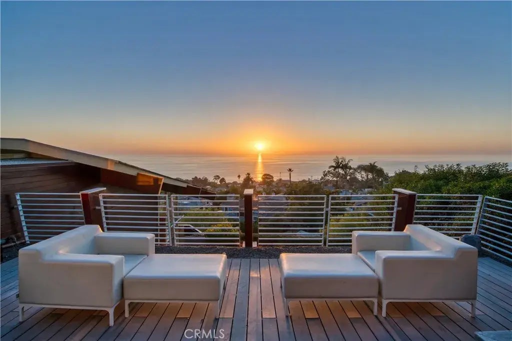 Furnished or Unfurnished. This stunning modern architectural estate, built by renowned architects Horst and Arianna Noppenberger, is now available March 3 for long term furnished. Set on a 10,000 sq ft lot, this home offers panoramic ocean views and exquisite attention to detail in every custom finish. The open concept floor plan showcases Rich Apitong wood, cladded walls, and mahogany wood floors. The custom European kitchen is a chef's dream, featuring high-end appliances, Bulthaup cabinets, Limestone countertops, and Lea Ceramiche porcelain tiles. The living space flows seamlessly to the private, dreamy backyard, complete with a large outdoor entertaining space featuring a built-in BBQ and fire pit, making it the perfect space for relaxation and entertaining. This one-of-a-kind property is a must-see for anyone looking for luxurious living in the heart of Laguna Beach. Don't miss the opportunity to live in this meticulously built, modern oasis with stunning ocean views. Rate listed year lease furnished