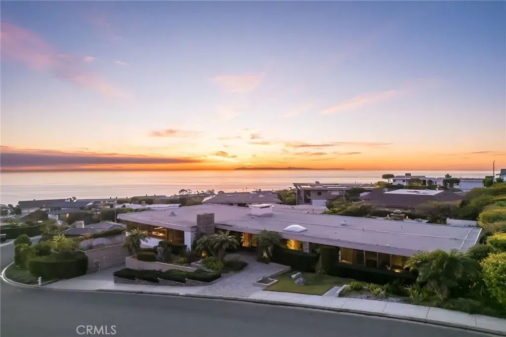 Panoramic views, strong lines, and unmatched privacy converge in this dramatic single-level Monarch Terrace residence. Architected by John Galbraith and dubbed Olympia Pacifica, this property exemplifies contemporary living, with generous use of concrete, stainless steel, and glass melding together for maximum impact. The main area, anchored by a massive fireplace, is framed by large panes on three sides, offering vast views of the coastline, city lights, and the ocean beyond. This space combines the living, dining, and kitchen sections and features multiple access points to the exterior. The expansive backyard is elevated yet private, with a pool, spa, and raised patio area - a perfect vantage point for enjoying sunsets over the Pacific. Dual primary bedrooms are also water-facing, both opening to the exterior. Secondary bedrooms, laundry, and a home office complete the main level. The rare subterranean garage is large enough to fit four vehicles and features an additional area that could easily accommodate a workshop, storage, or home gym. Rarely do properties of this pedigree, with both views and privacy, become available.