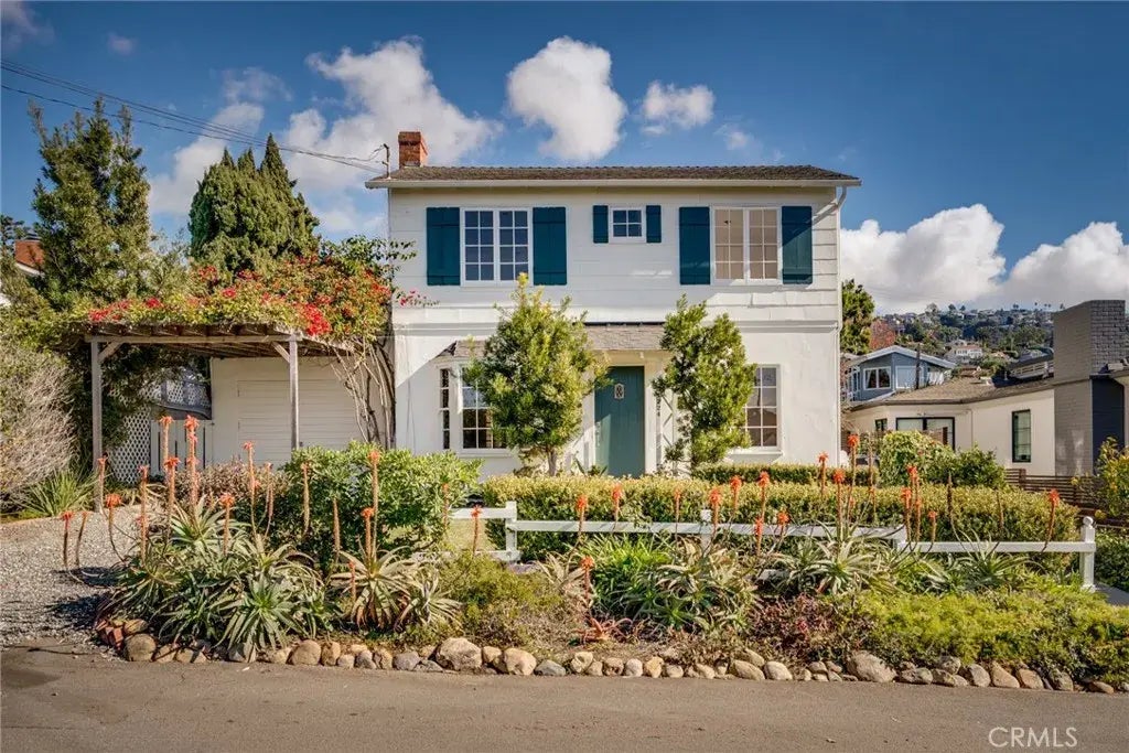 This one is a classic! Built in 1936, with all the features that you love to see in a historic, Laguna Beach bungalow, charm exudes out of every corner of this precious home. From the moment you step inside onto the old fir wood floors, to the brick hearth and surround of the fireplace, even just a grasp of the original glass doorknobs take you back to a simpler time, when living in a cozy space with an abundance of natural light were most of what you needed to make a house a home. Of course, the people inside any dwelling are what truly capture the essence of home, and this one has been loved as such for close to a century. The home features three bedrooms, two and half bathrooms, inside laundry, light and bright living spaces, and a remodeled kitchen with newer appliances. The sunny rear yard is a dream for Laguna Beach with mature trees, grass area, and two separate patio spaces. The first level primary bedroom has French doors out to the rear patio and yard, and en suite bathroom that includes a footed tub, separate shower, and pedestal sink. Original covered porch area has been enclosed and makes for a great family living space or reading room. Plentiful with windows, the natural light in this space looking out to the rear garden is simply the perfect place to settle into however you love to pass the time and spend your day while at home. Upstairs features two very large bedrooms that have small walk in closets plus added closet spaces, and both have ocean and horizon views. There is one shared bathroom upstairs with a single sink, and tub/shower combo. This tiny stree