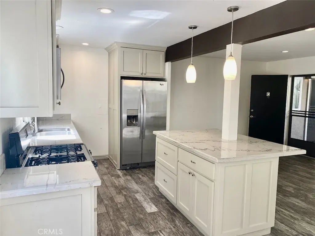 Completely remodeled and upgraded first floor unit. Newer kitchen, newer bath, newer flooring. Beautiful granite counters, a granite island/bar counter, stainless steel appliances and an exquisite contemporary porcelain tile bathroom with granite counter top- give this unit a very modern feel. The island counter has hanging pendant lights. Ground level, this is an open floor plan, adjacent to the community courtyard patio. A communal laundry room is on the property. This unit includes a carport for 1 car. A must see! Available Now! Call on pet.