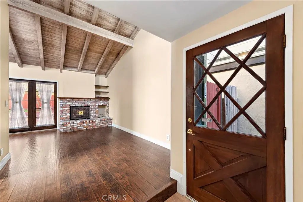 This single level hill top home is located in a quiet neighborhood near walking and hiking trails and a 10 acre park with playground, tennis and basketball courts. This charming 2 bedroom 2 bath home has a small beautiful backyard with enclosed patio. The kitchen includes built-in range, dishwasher, refrigerator and microwave. The large living room has open beam ceilings, brand new double paned windows, beautiful wood floors and is great for entertaining. Indoor laundry room in hallway including washer and dryer and some extra storage space. Fully remodeled hallway bath with shower over tub. Master bath has shower, AC wall unit and bidet. Brand new house furnace and brand new hot water heater! Two car garage with plenty of storage space and two parking spots in driveway. Just minutes to town and beach. No use of fireplace in living room.